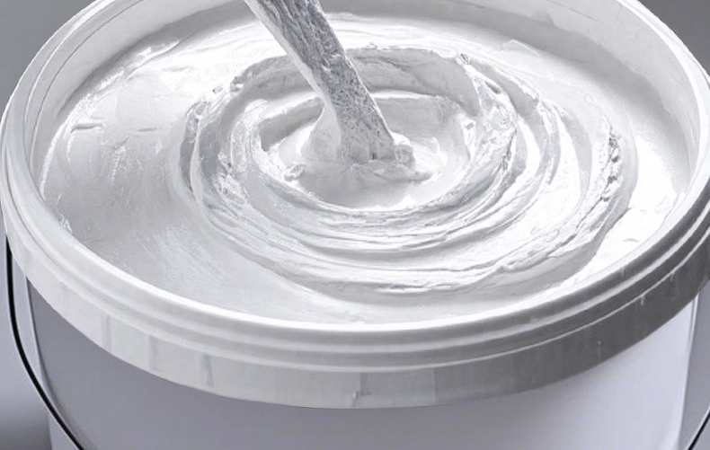 The nano aerogel thermal insulation coating appears as a loose solid but regains a smooth, fluid consistency after stirring.